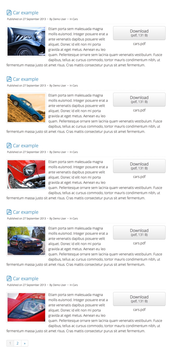 Display a flat list of documents with descriptions. Try the flat list layout on our demo.