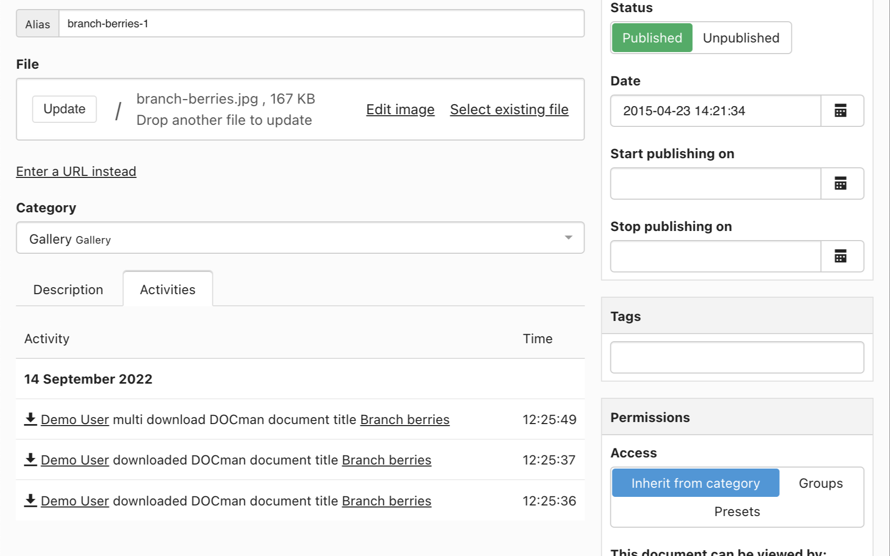 Completely manage DOCman from the frontend: add, edit and delete documents & categories