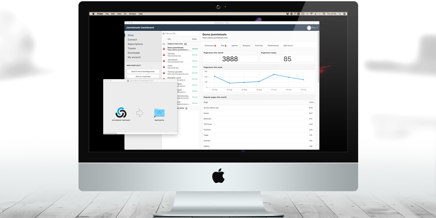 The dashboard is available to all our subscribers. Go ahead log in and download Joomlatools Dashboard Desktop App. Not yet a subscriber? Get your Subscription today, starting from $39.