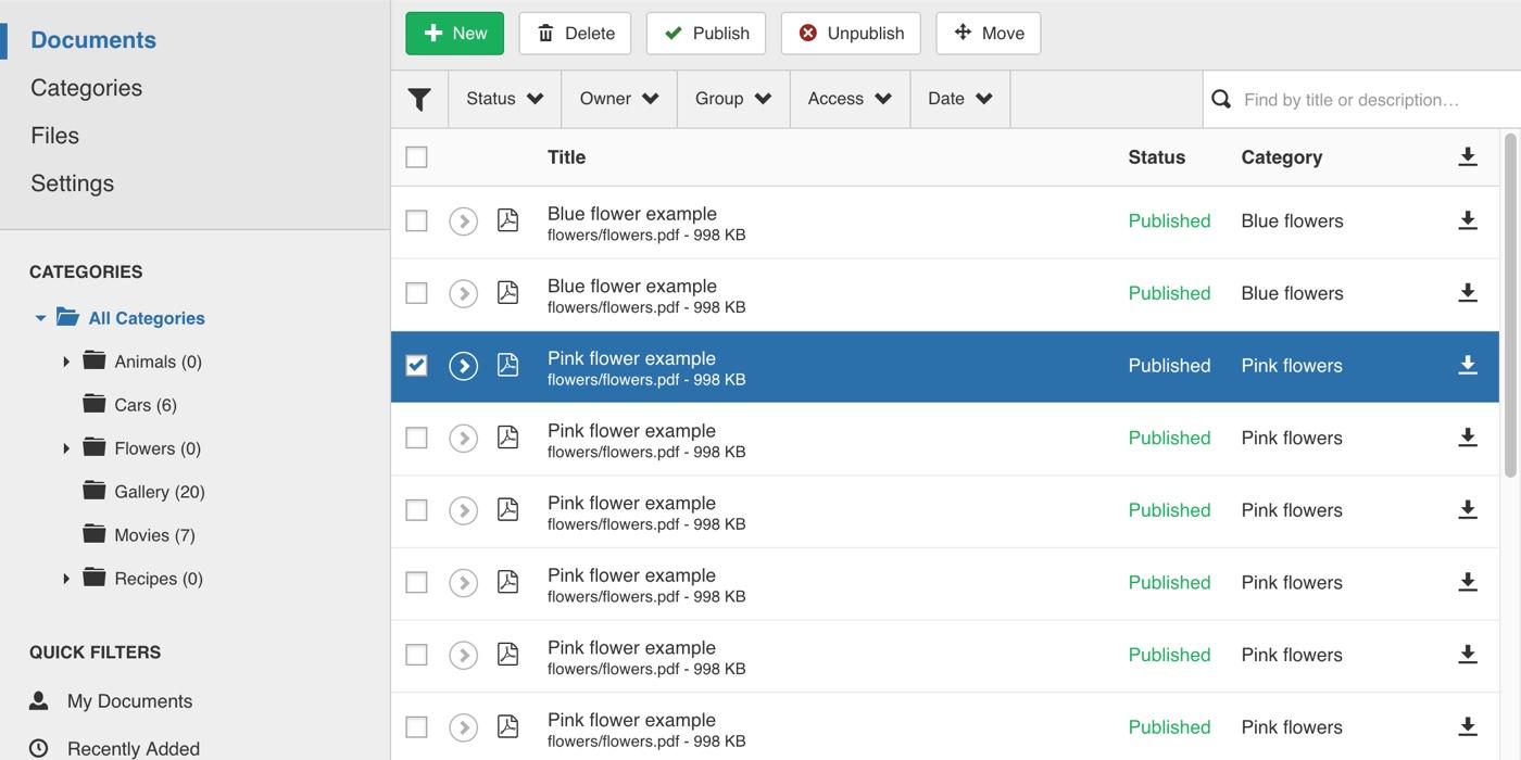 When a new file is uploaded, DOCman automatically finds which category it should go into based on the folder it’s uploaded in and creates the corresponding document for you. Just a little bit of magic.