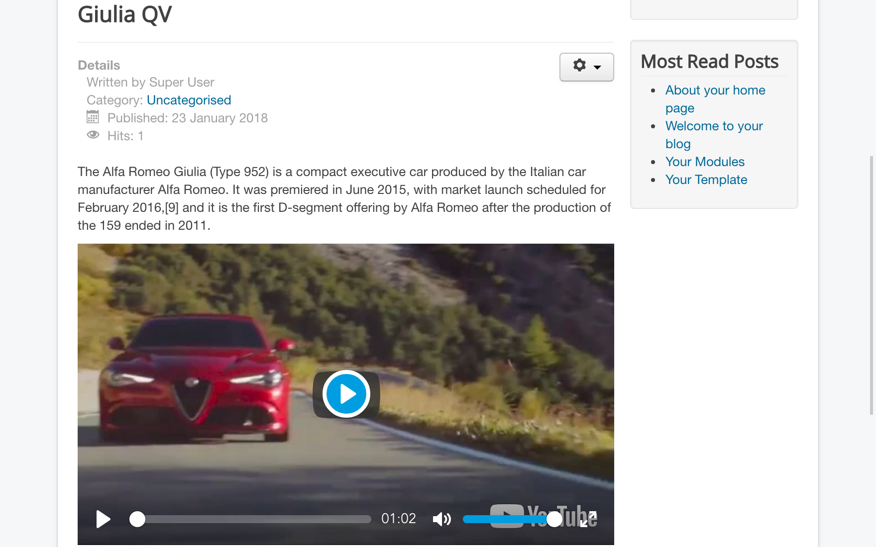 Inserting a video in a Joomla article