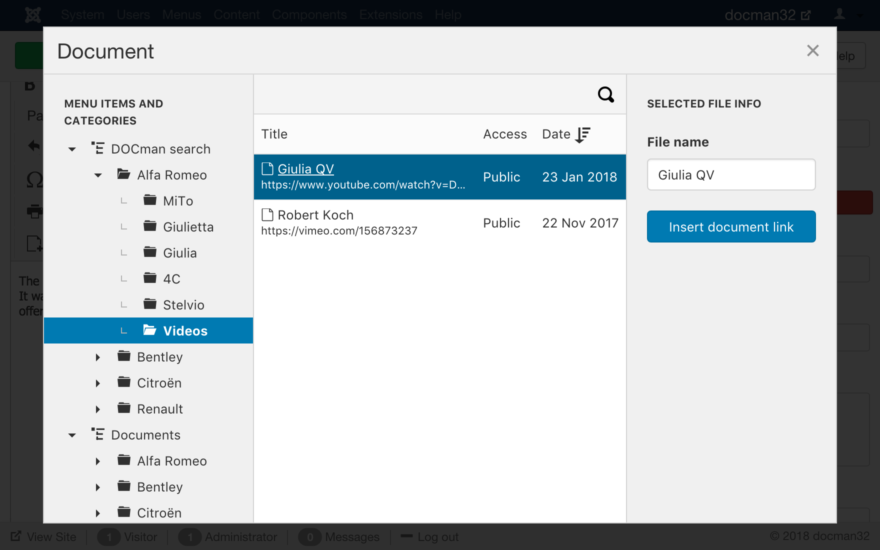 Playing videos in Joomla with DOCman
