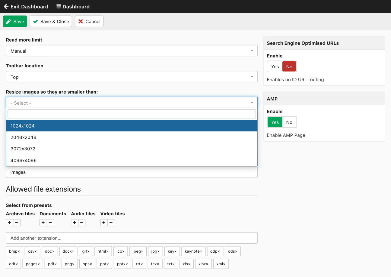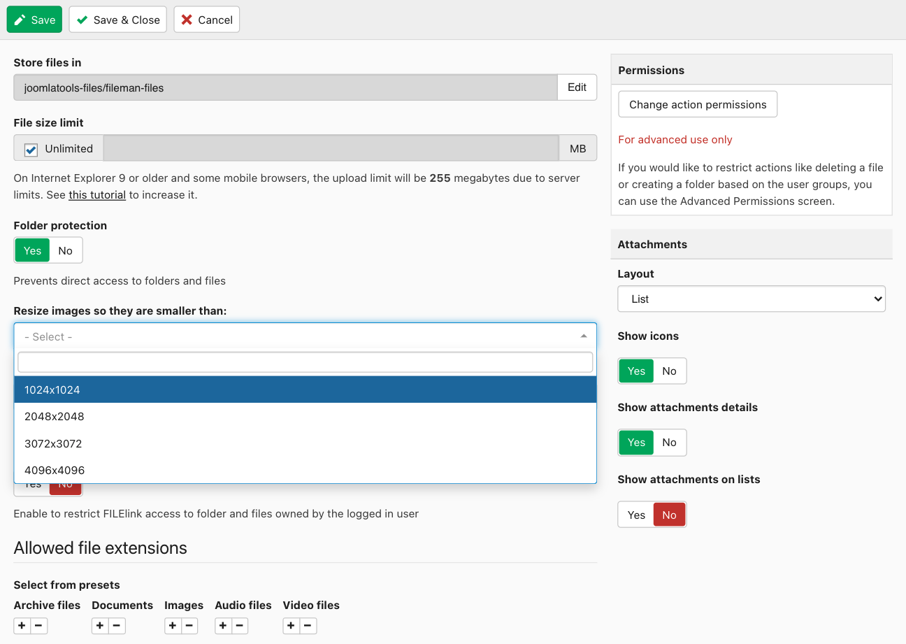 Last updated: 25 April 2022With Joomlatools Connect you no longer have to worry about server file limits, set the maximum size for your images and Connect handles the rest. Automatic image resizing is supported in FILEman, and TEXTman.