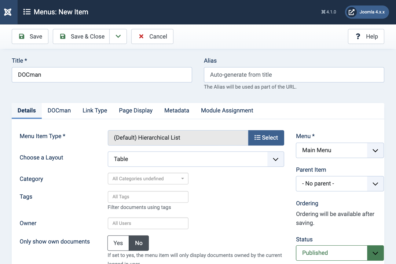 Learn more about DOCman's various menu item types.