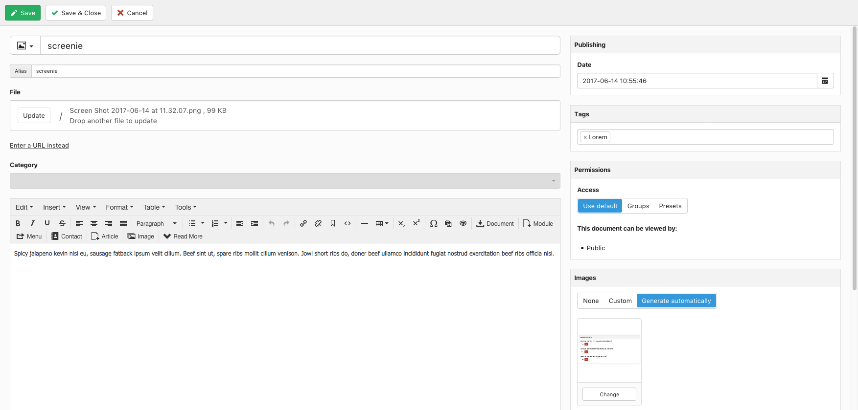 - When you click on the Edit button you will be able to access the fully featured DOCman front-end editor.