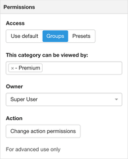 Using the User Type app in PayPlans users that subscribe to the Premium membership plan will automatically be added to the Premium user group. Resulting in access to the DOCman categories and documents.