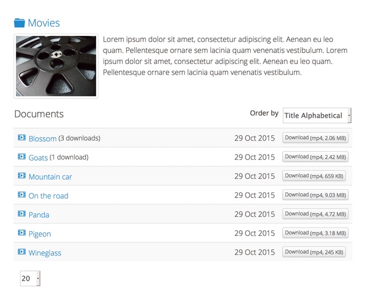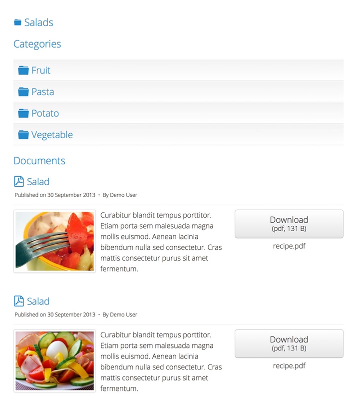 Display a list of categories and documents with descriptions. Try the hierarchical list layout on our demo.