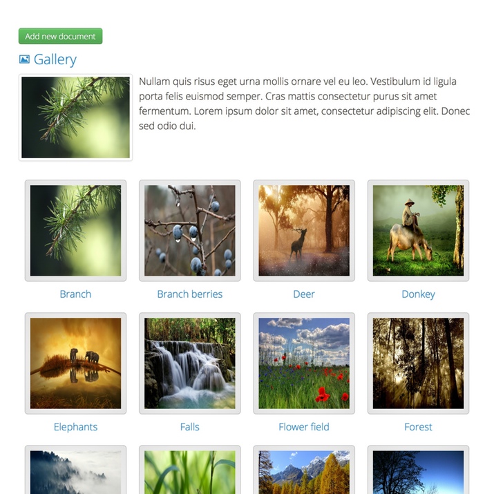 Display a gallery of categories and documents in an image gallery. Try the hierarchical gallery layout on our demo.