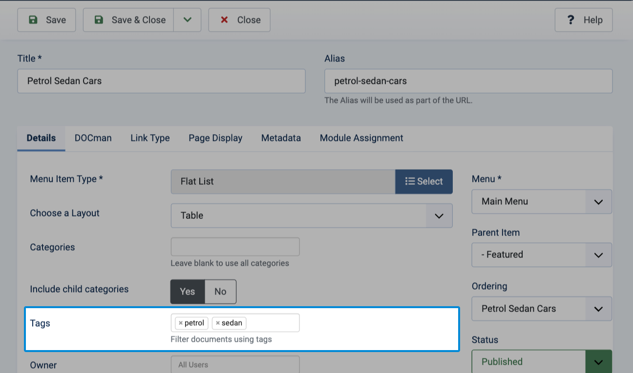 Using tags allows you to filter documents from various categories.