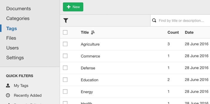 Last updated: 24 May 2022Tags are non-hierarchical keywords assigned to DOCman documents. They are a way to classify and relate documents without a strict hierarchical structure like categories ( read more about document categories). Tags allow you to: