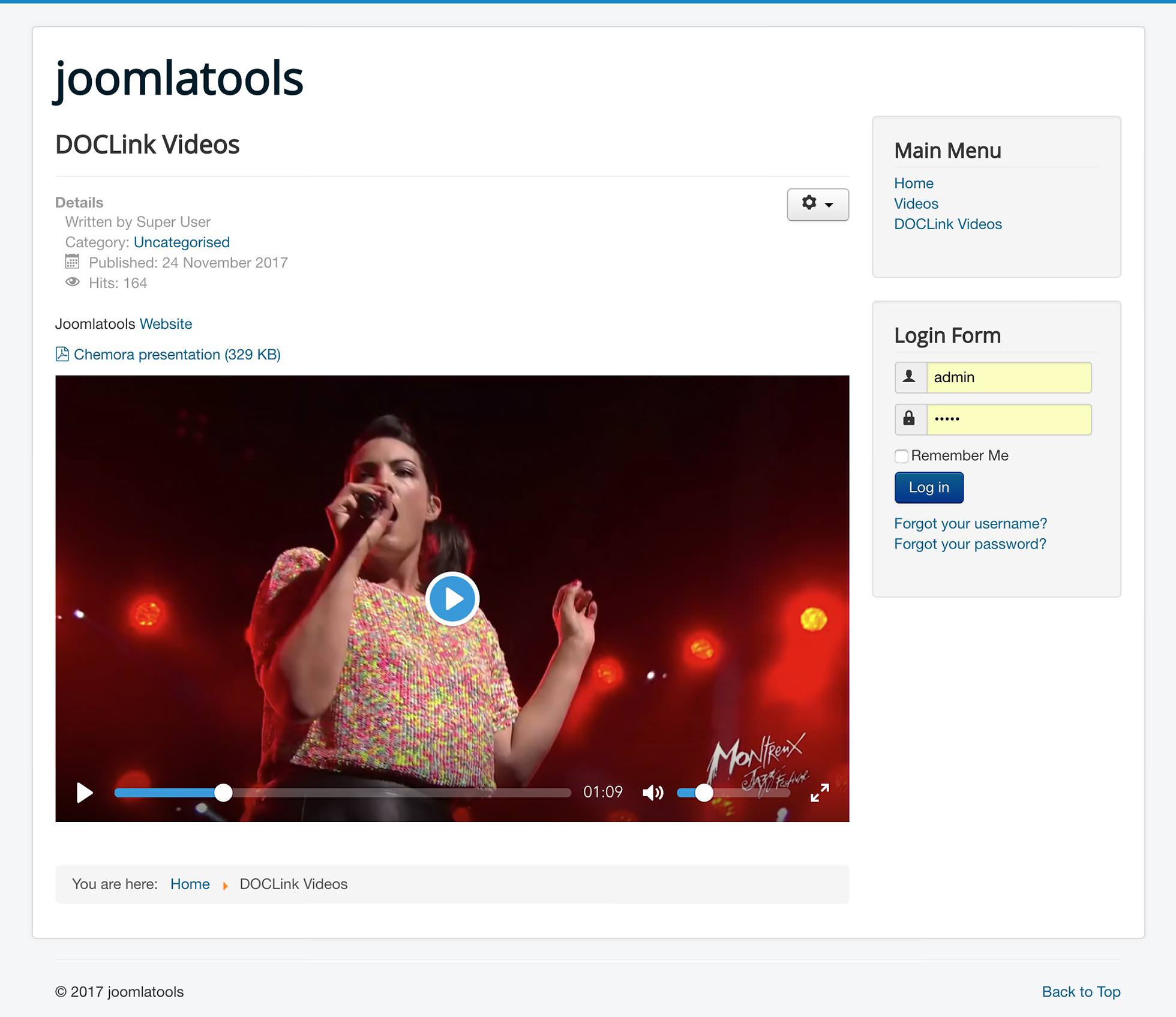 DOClink now converts video and audio links in articles into embedded players. When you insert a link to a video or audio file in a Joomla article you’ll see that this link is replaced by a media player.