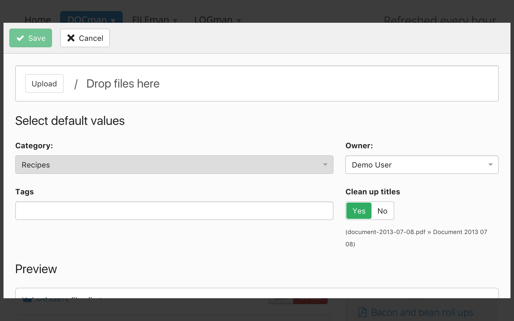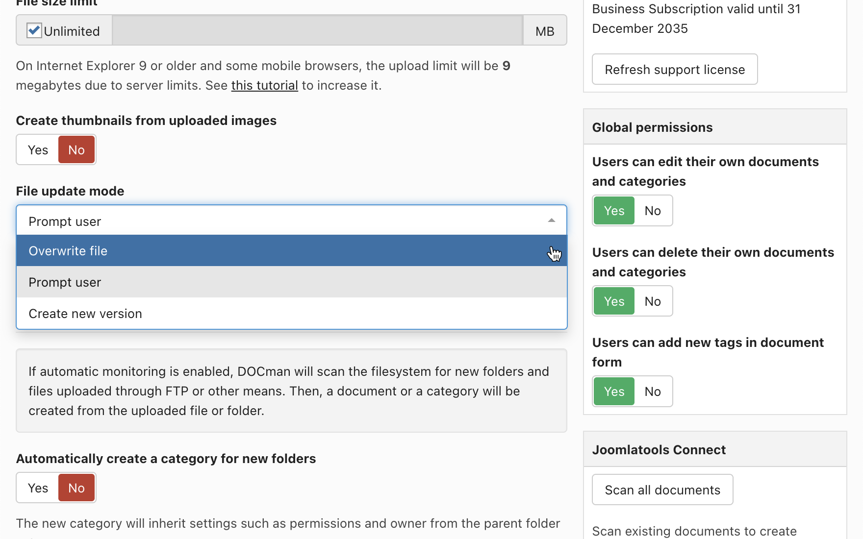 Completely manage DOCman from the frontend: add, edit and delete documents & categories