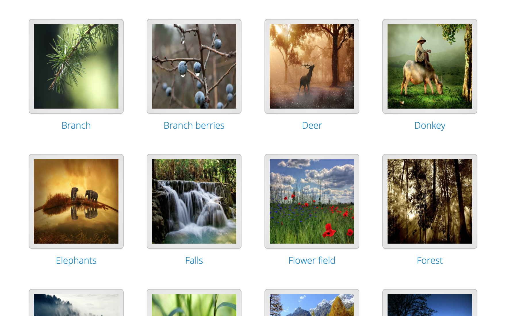 Automated thumbnail generation for uploaded files. Every image file will get a beautiful thumbnail. We also support PDF, Microsoft Office, Open Document Format, Videos and many more file formats using our Connect service.