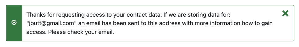 Upon clicking the unique one-time URL in the email message the user will be able to access and update their details, or completely delete their details, thus ensuring that your site remains GDPR compliant.