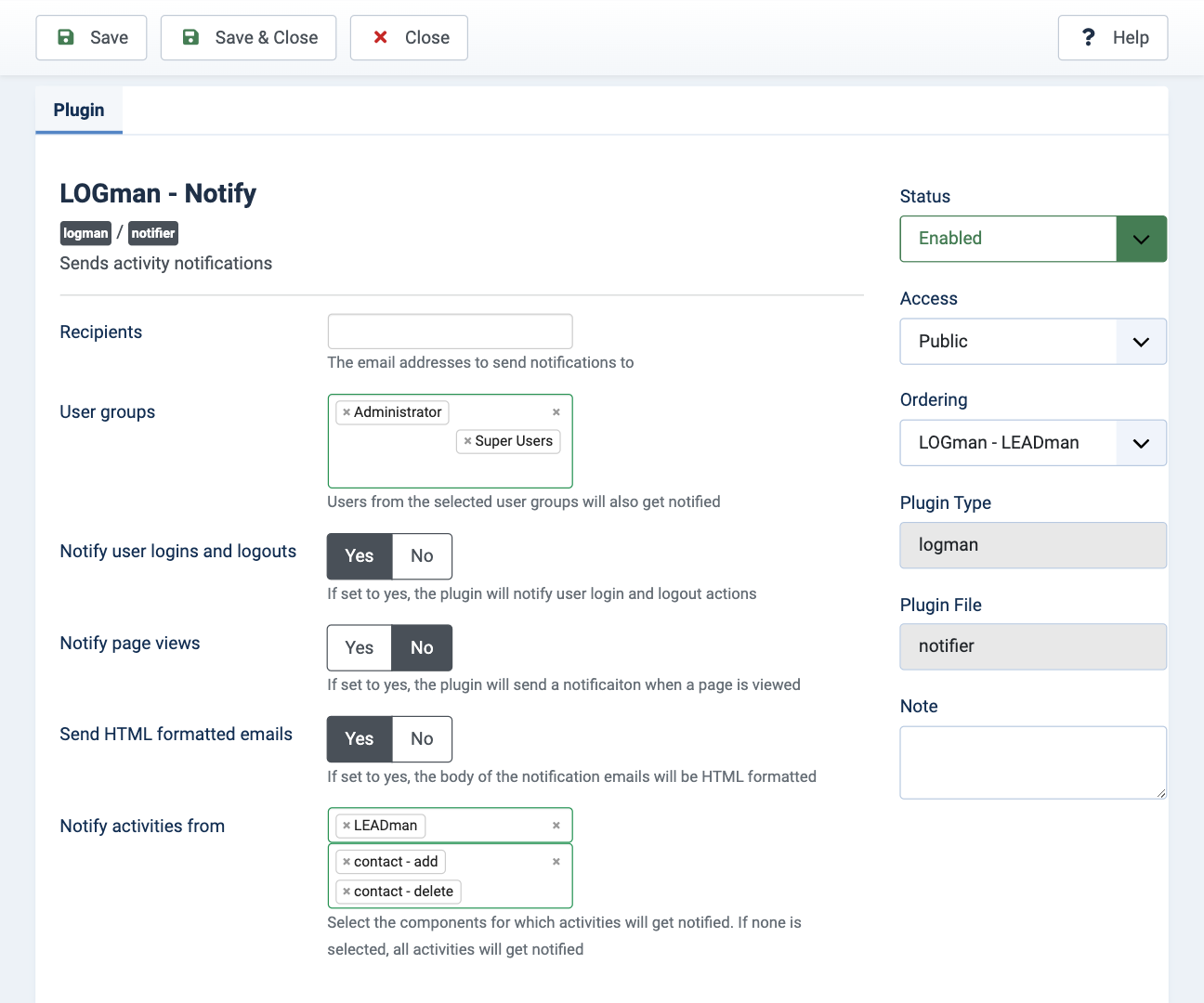 Last updated: 25 April 2022Using the LOGman notify plugin, you can send email notifications to either specific recipients or user groups every time a website user performs any the following activities: