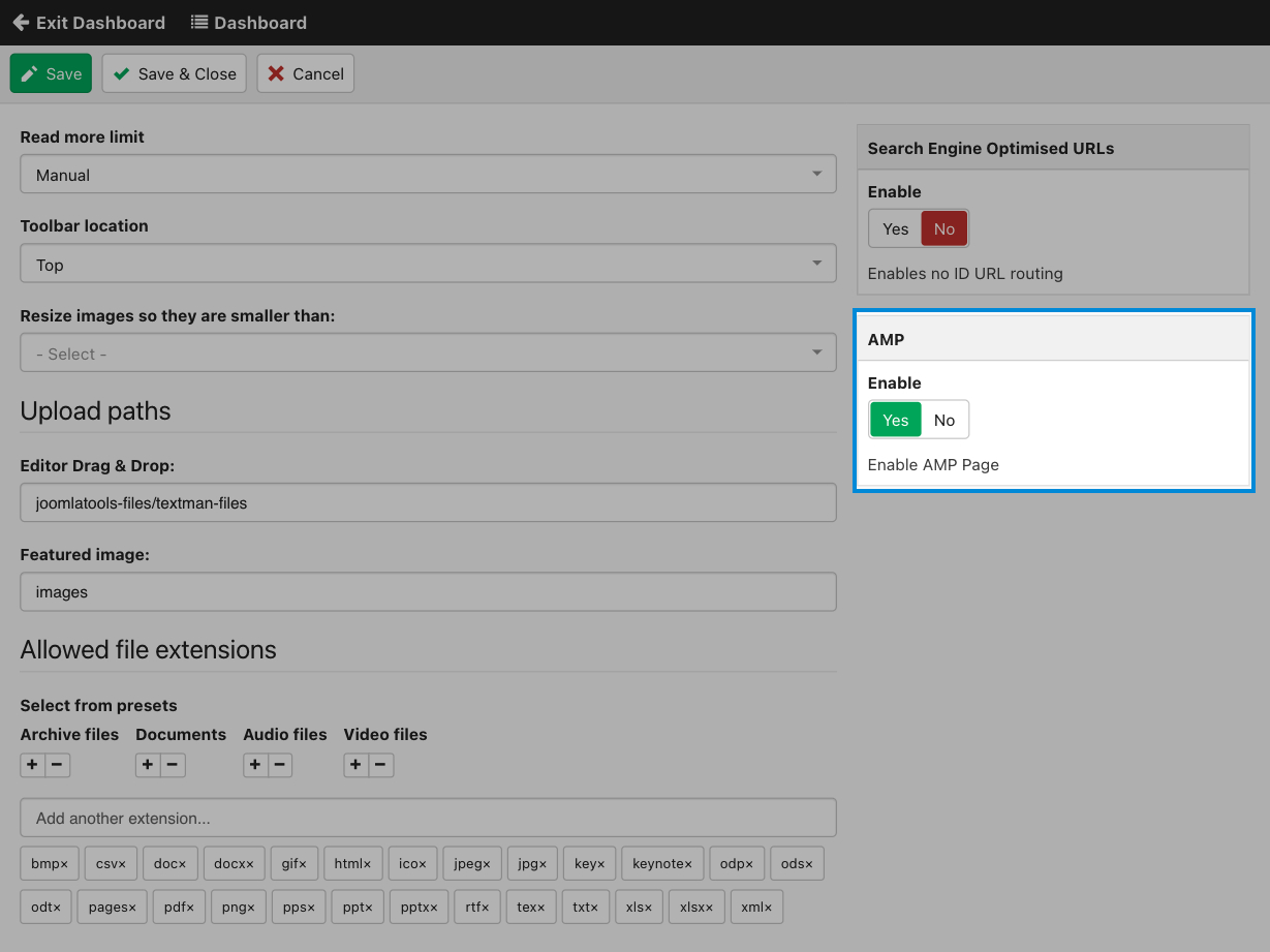 Enable AMP support from the Settings tab in TEXTman's dashboard.