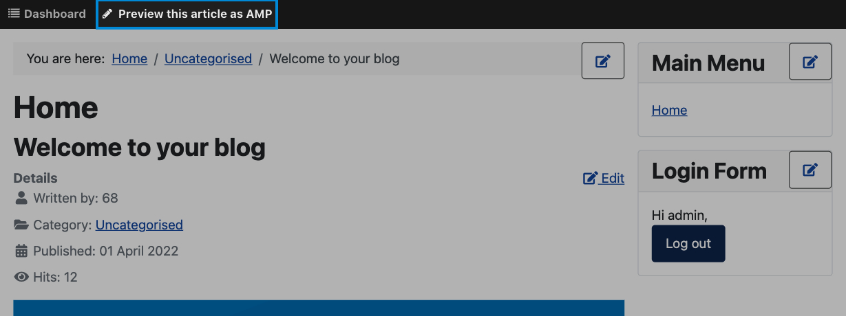 You can now preview your article's AMP page from the Preview this article as AMP link in TEXTman's sticky toolbar.