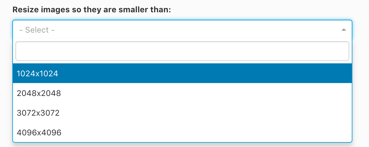 If you select an image size then your images will be resized automatically so that the maximum image dimensions match this size.