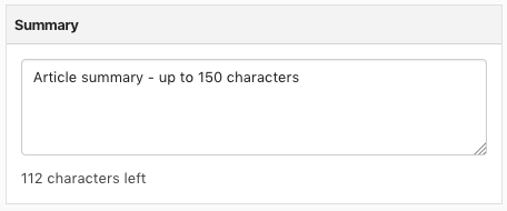 <meta property="og:description" content="Article summary - up to 150 characters" /> - The page type