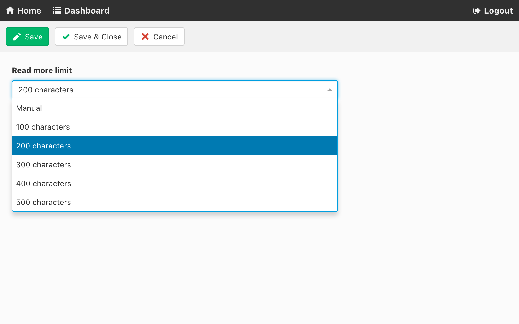 Manually adding “Read More” links is now a thing of the past! You can set the “Read More” limit through the TEXTman settings and a “Read More” link will automatically be inserted for all your articles.