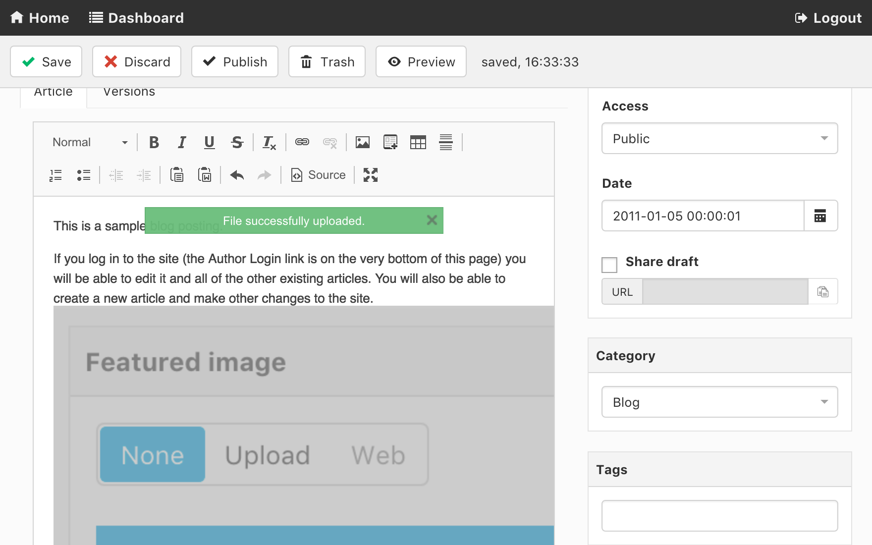 When a user drags an image into the editor, or when a user uploads a new featured image it will automatically be resized as per TEXTman’s configuration.