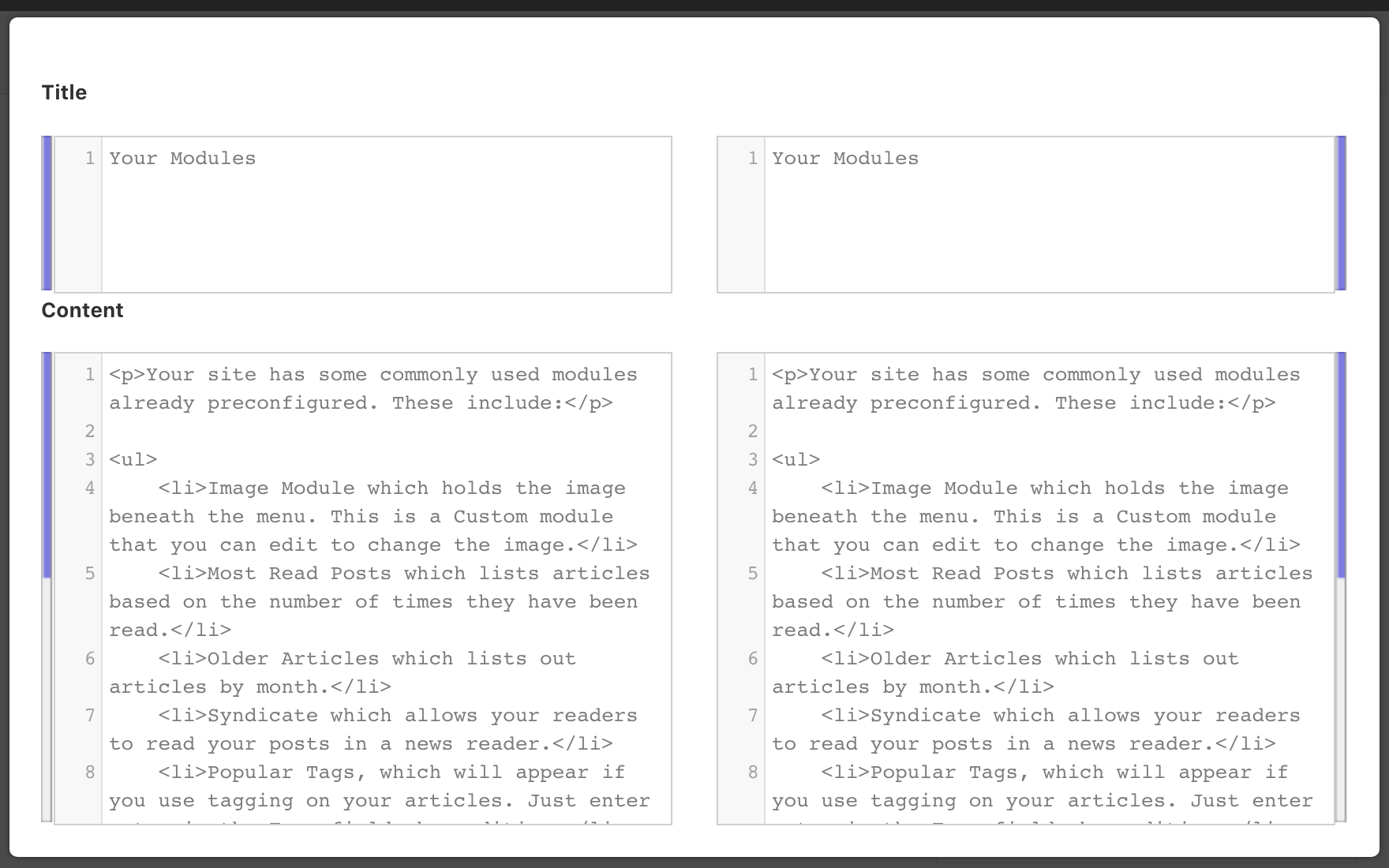 Every change made to an article is now tracked as a version in TEXTman. Versions can be easily managed. For instance, you can select to view the differences between two versions, or you can opt to restore a previous version with a single click.