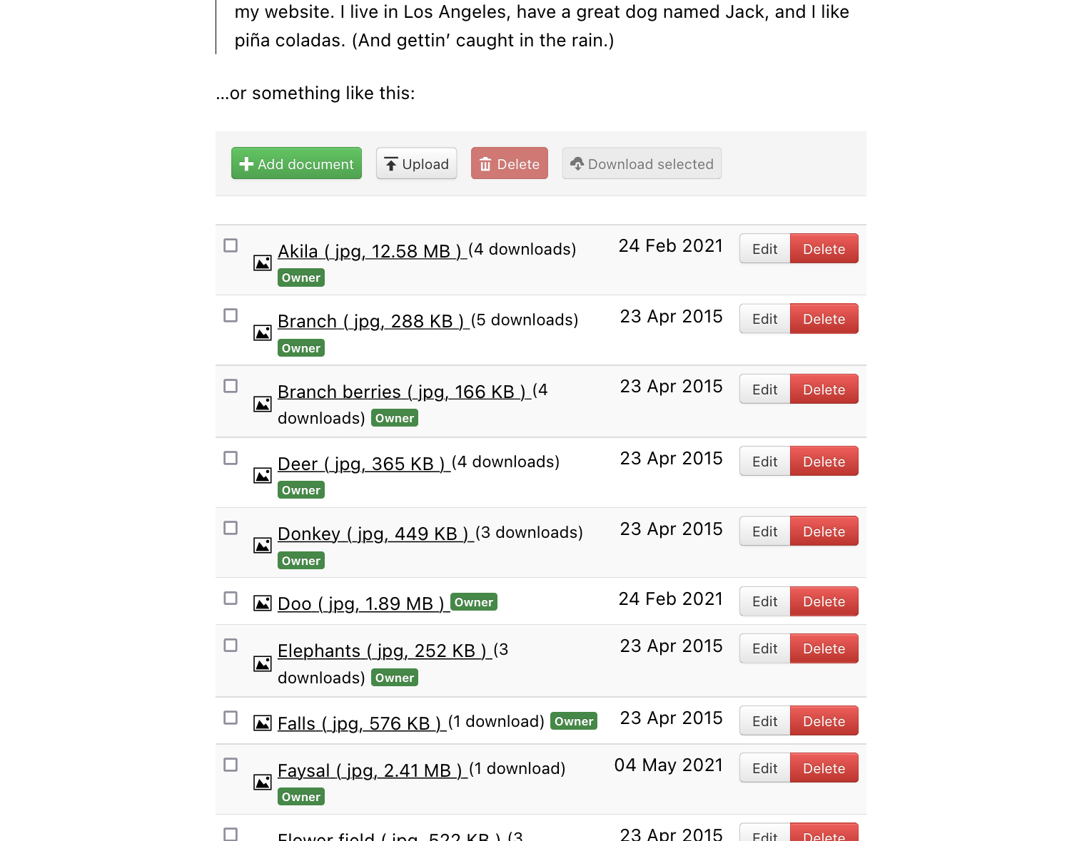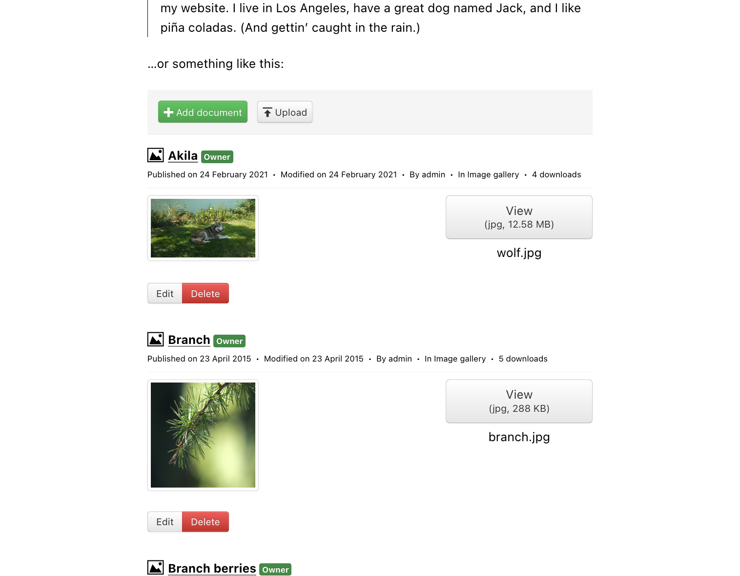 Display a flat list of documents with descriptions. Try the flat list layout on our demo site.