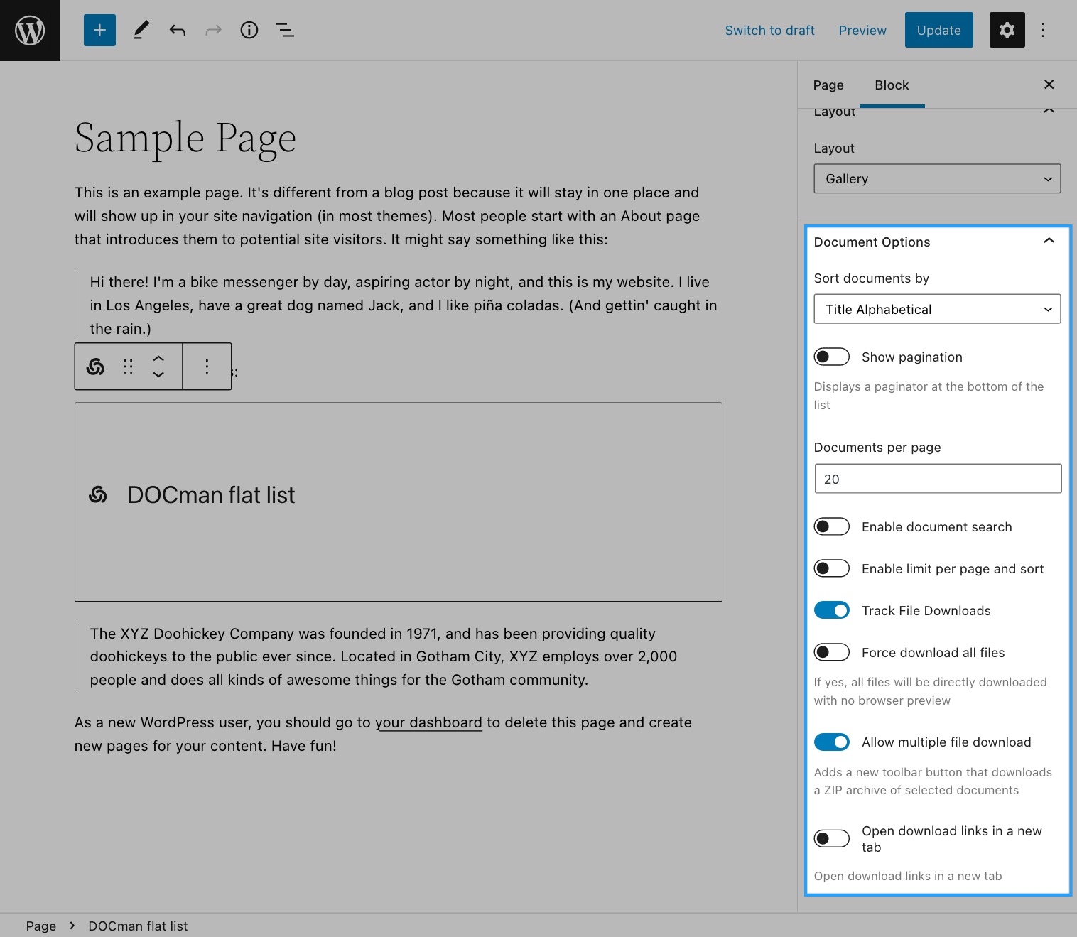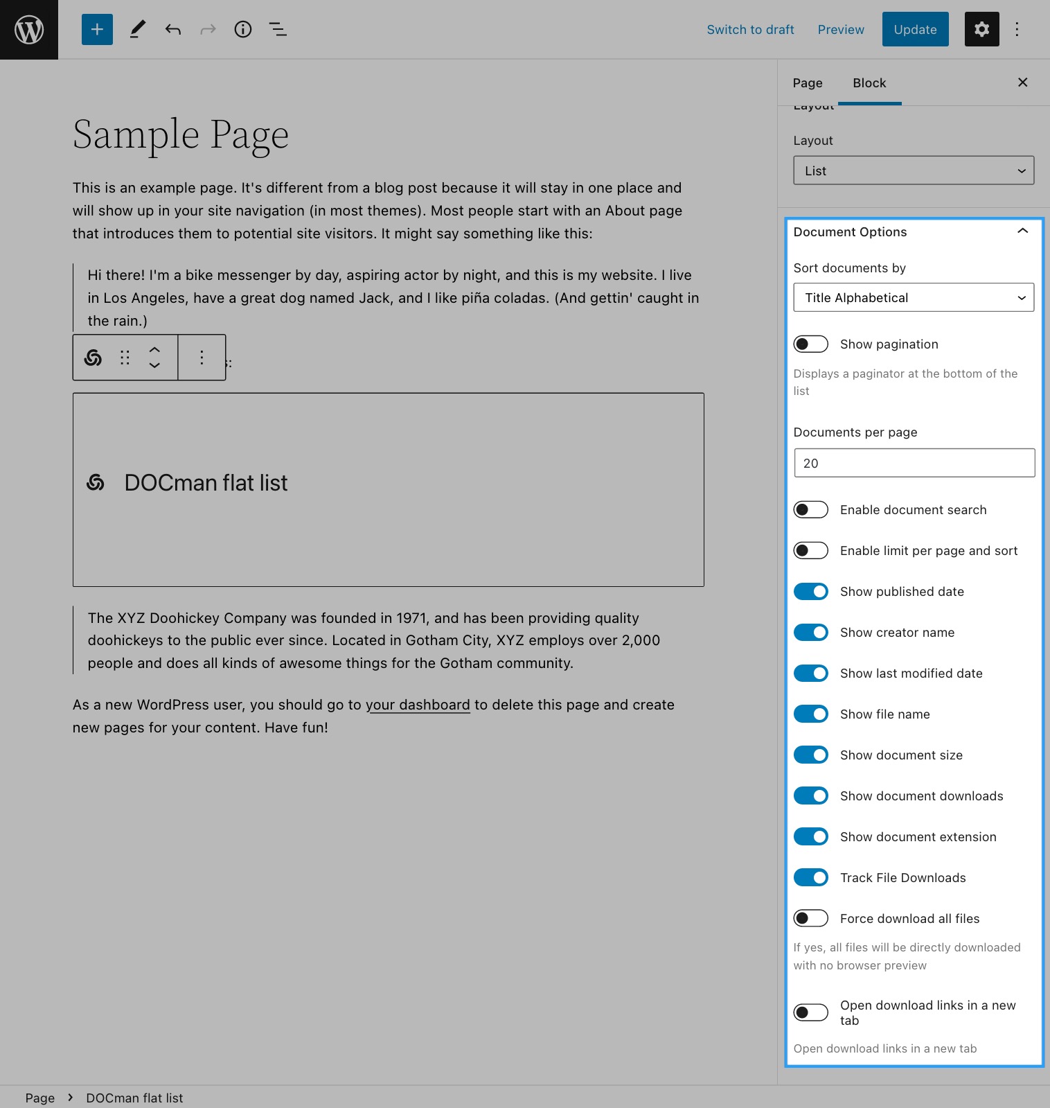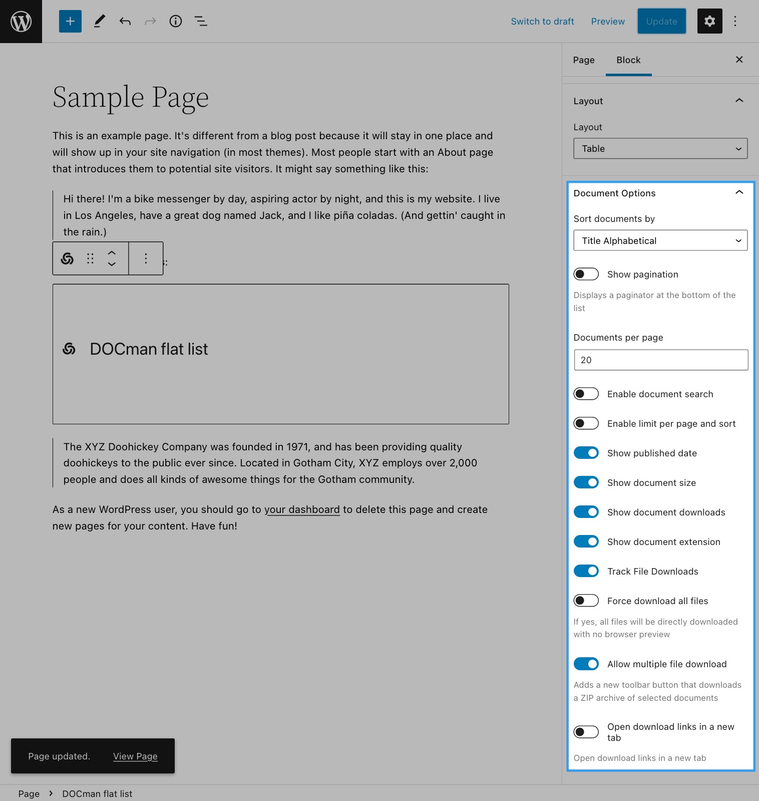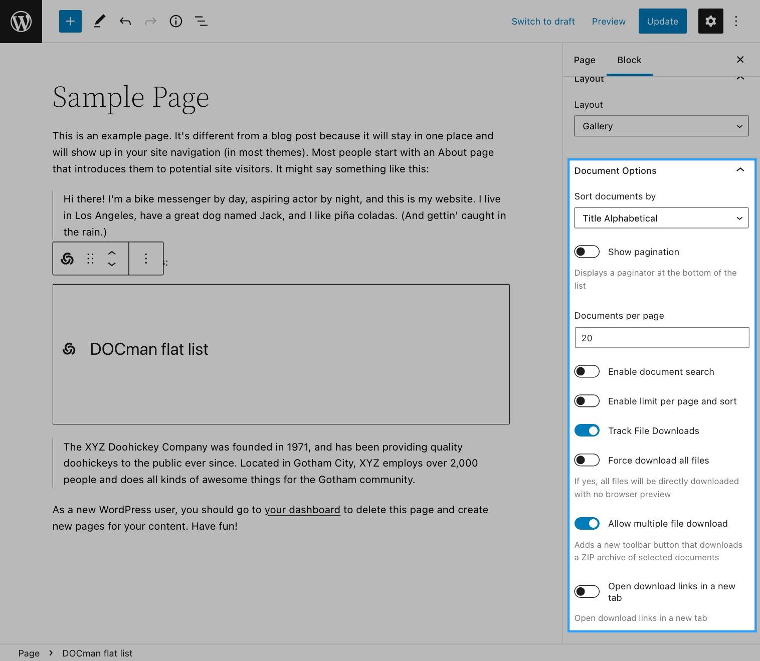 Last updated: 14 January 2025The DOCman's Flat document list block allows for an easy way to display a filtered list of documents.