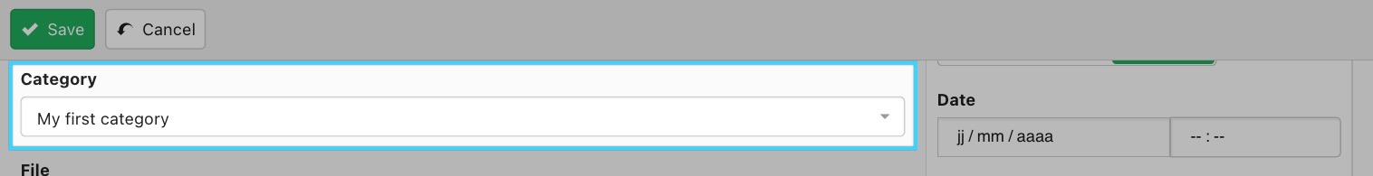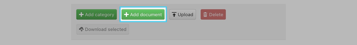 Logged-in users with upload permissions can click the Add document button located at the top when browsing categories from the frontend. A click on this button will open a new document form.