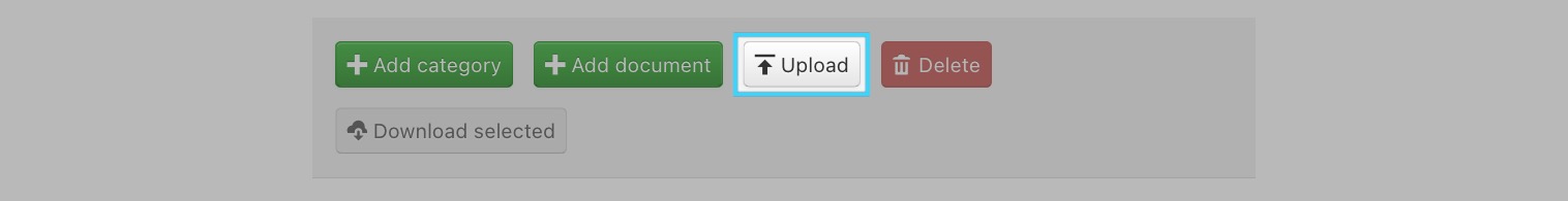 Logged-in users with upload permissions can click the Upload toolbar button for uploading multiple files at once. A click on this button will open the file upload window for batch creating documents.