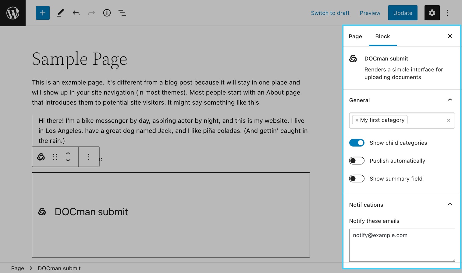 It is possible to automatically publish the submitted document or be notified through email when a document is submitted.