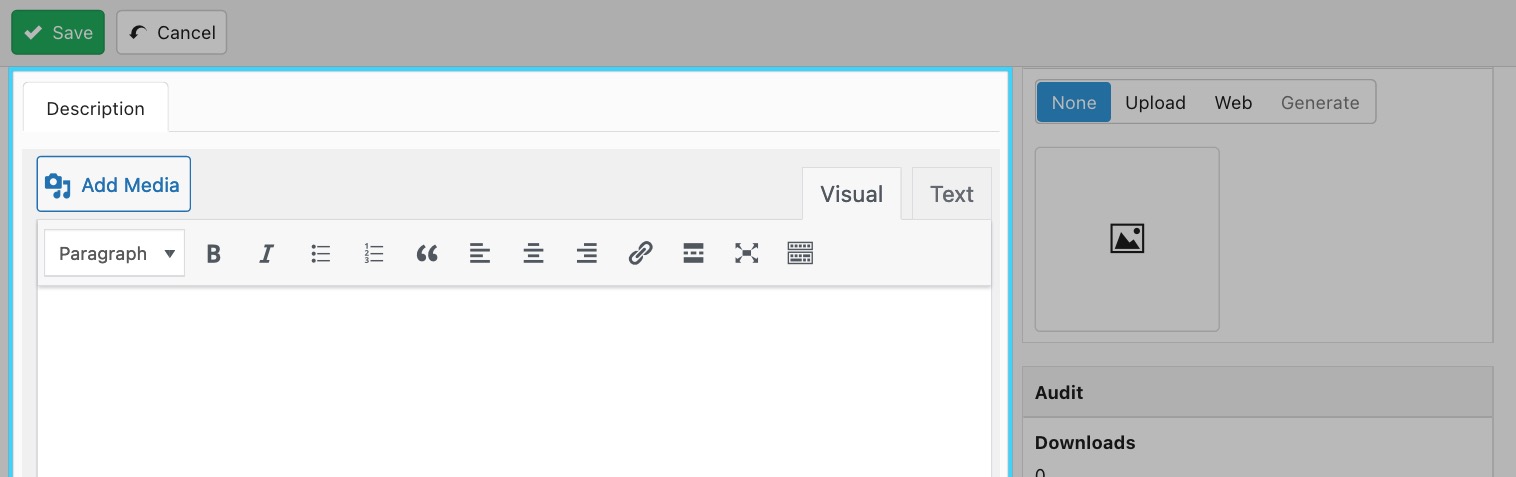 You can enter a description for your document in the WYSIWYG editor. The description will be shown on the listings page if you use a list layout.