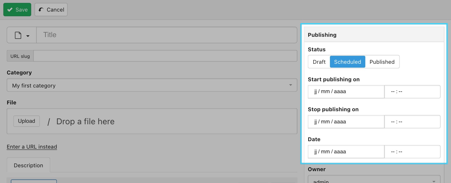 Additionally a document can be scheduled for future publication: