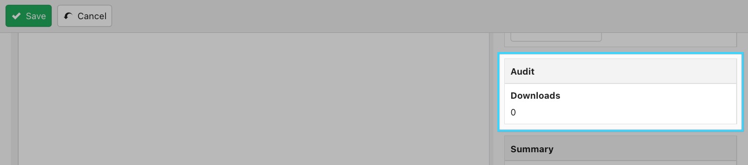 The audit panel lets you see at a glance how many times your document has been downloaded and which user last modified it.