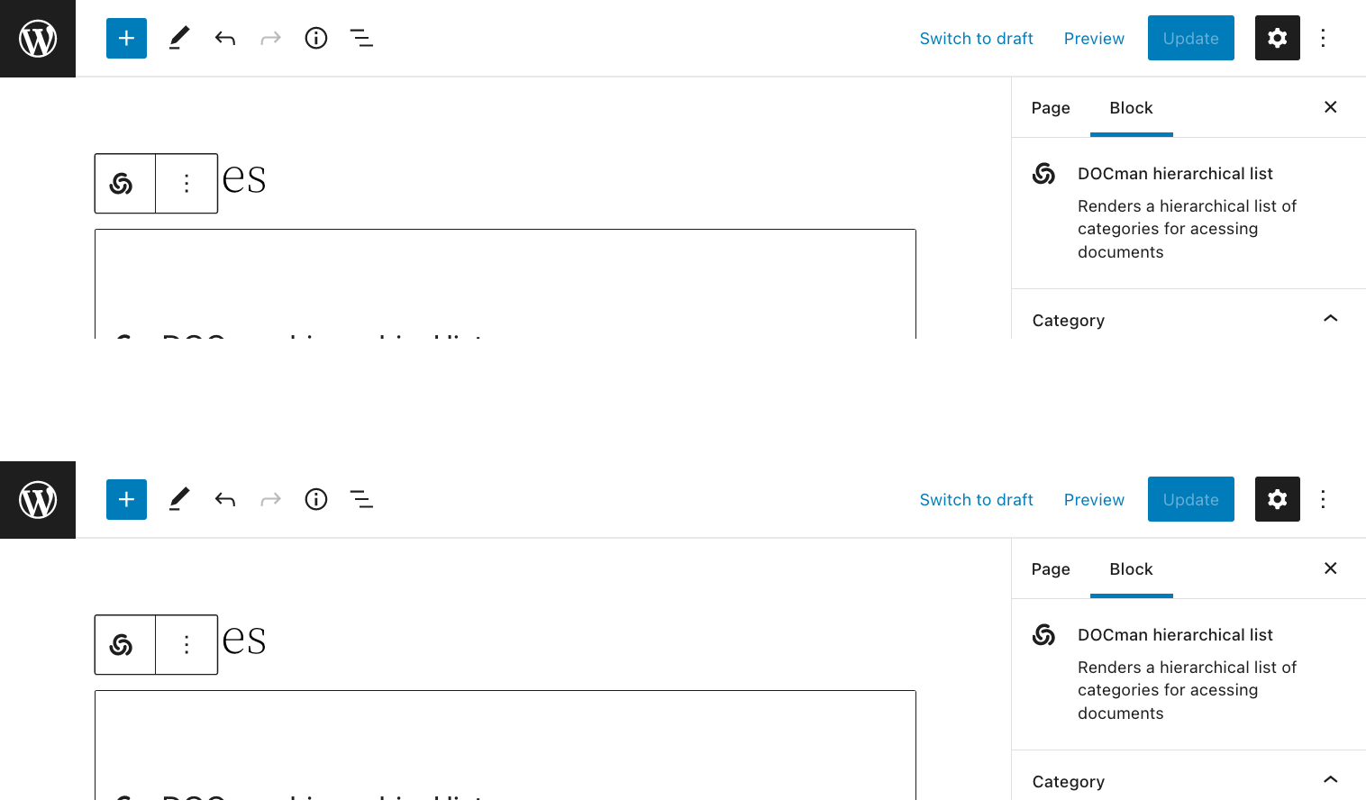 If you want to change the order that the categories are displayed in the frontend of your website, you can do so from the block settings. While on the page editor, you just need to click on the corresponding DOCman block (if using the Gutenberg editor) and then from the right sidebar Category options section the you will be presented with the following order types:
