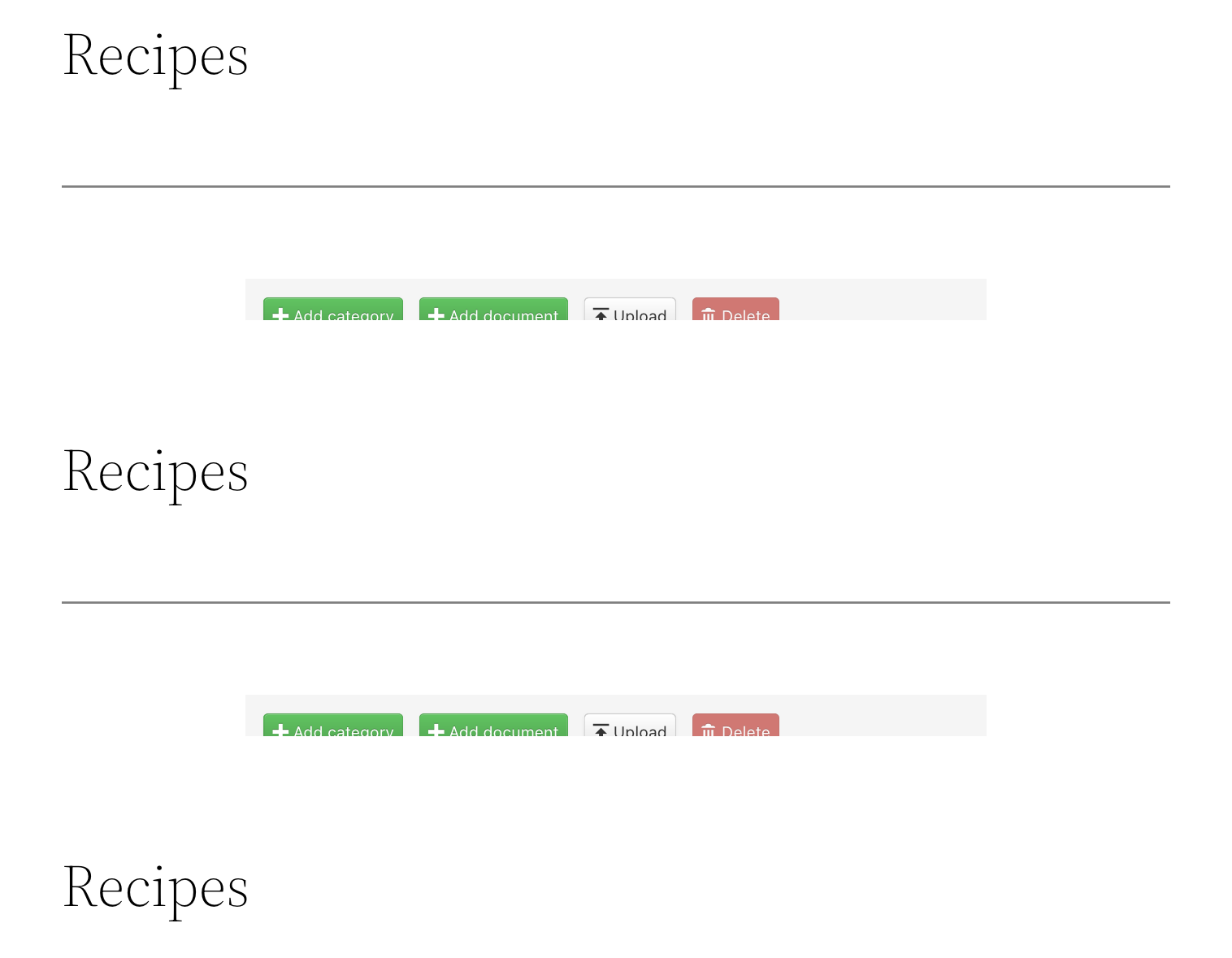 The flat documents list block will display a list of documents, with descriptions, from one or more categories. This block does not allow creating, editing nor deleting of categories from the frontend of your website.