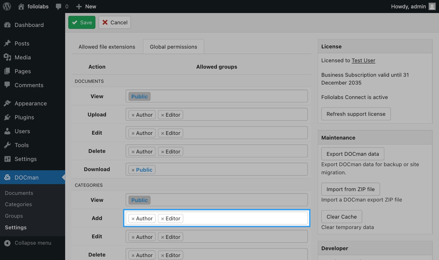 Last updated: 20 January 2025Toolbar create category buttons are only available for users that can create categories. You may control who can create categories on DOCman by setting permissions either globally or on a given category. These permissions are then inherited by other categories inside it unless you override them.