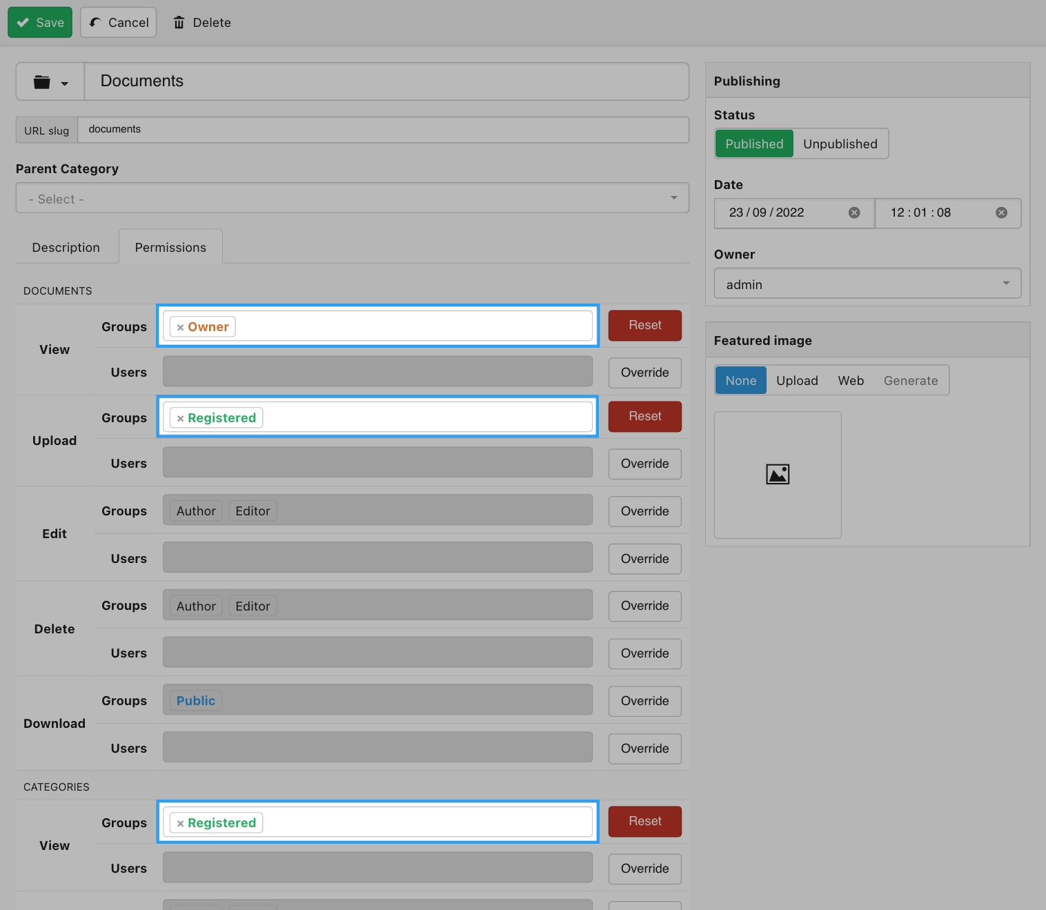 - Create a root category called Documents
