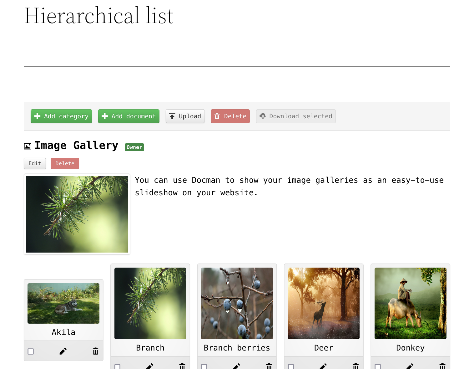 - page_category: category ID or UUID to list categories from. You can go to Categories in DOCman backend, edit a category and see the ID in the URL. Optional, defaults to all categories.