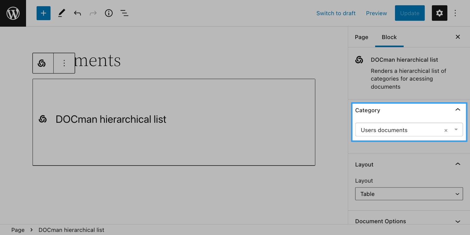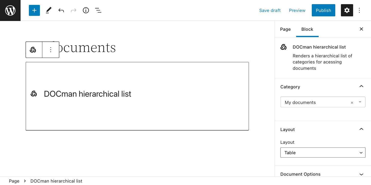 - Add DOCman Hierarchical List block.
