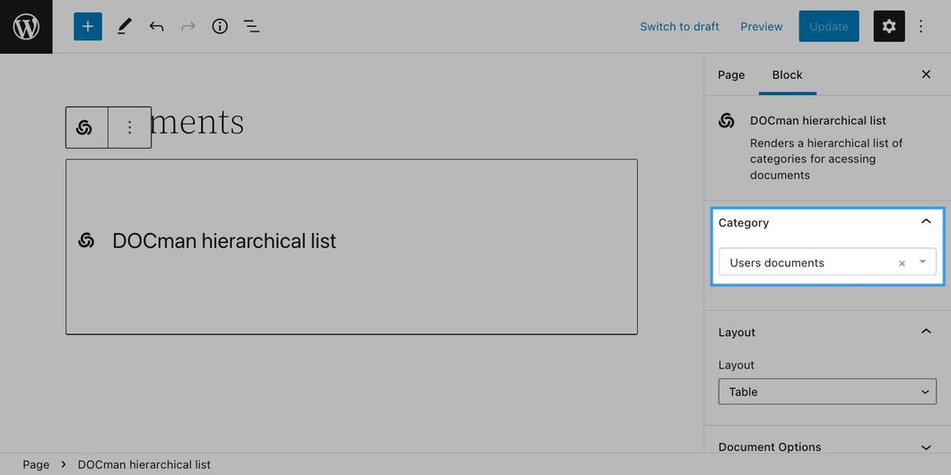 - Start by creating a Documents page and adding a Hierarchical List block, or a Flat List block (we'll use a Hierarchical List block in this example but the choice is yours).