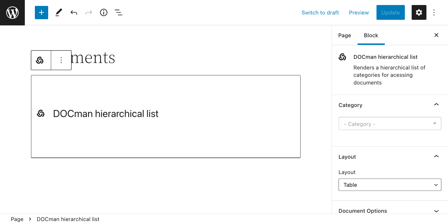 - Set Title to Documents (or just use the current title if editing an existing page).